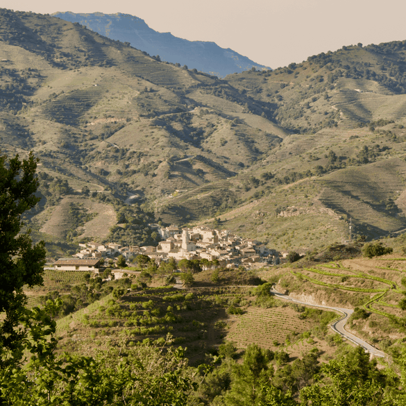 - Vingård utanför La Morera de Montsant, byn som ligger precis nedanför det mäktiga Montsant-berget